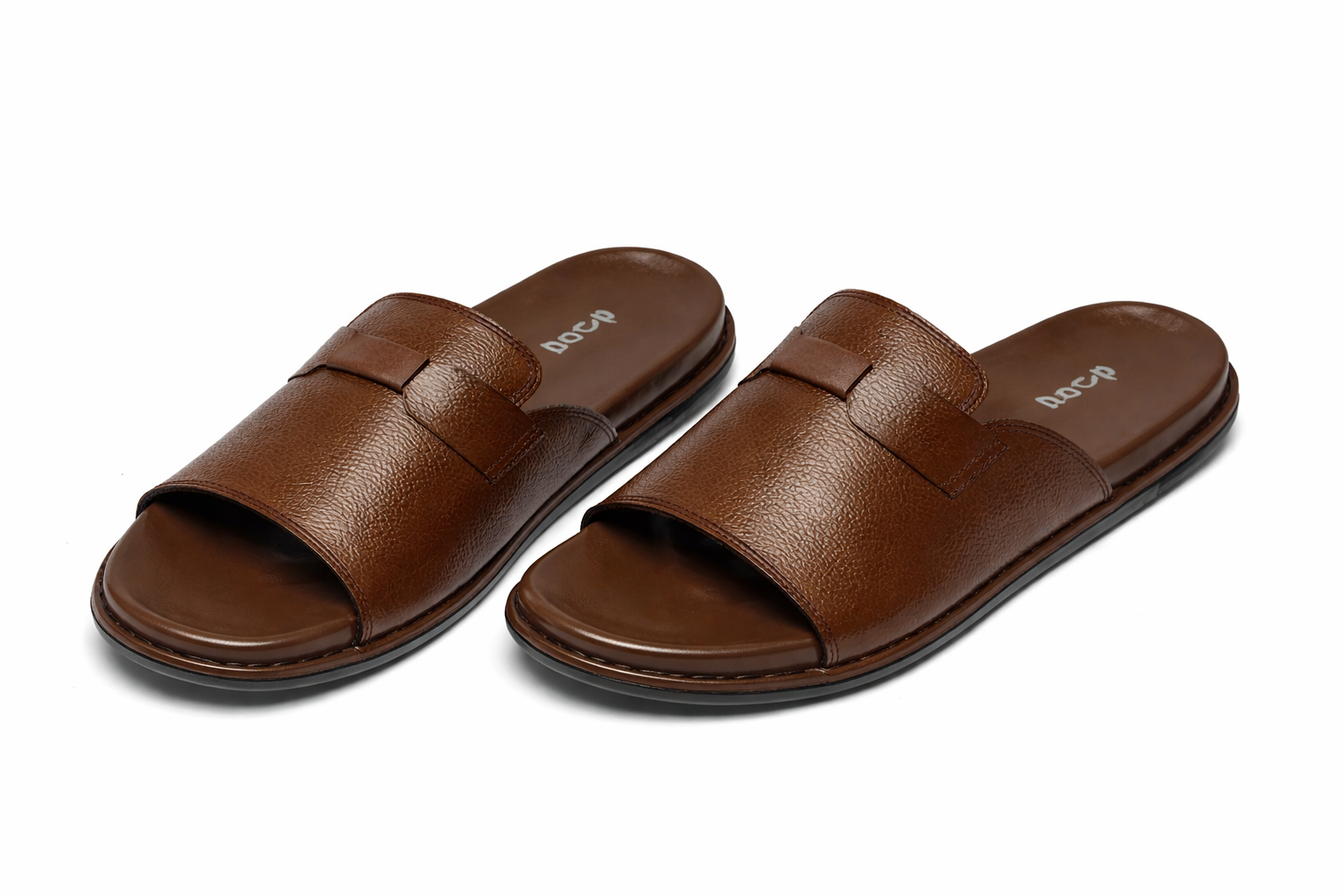 Elevate your footwear collection with these Premium Brown Leather Slide Sandals. Designed for both comfort and style, these sandals feature high-quality pebbled leather with a smooth finish, a comfortable contoured footbed, and durable rubber soles. The wide strap design and soft footbed make them perfect for casual outings, beach days, or relaxed indoor use. Whether you’re lounging at home or enjoying a day out, these sandals combine practicality with a timeless, sophisticated look.