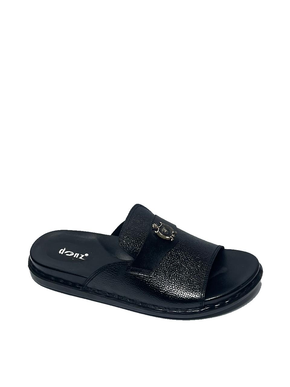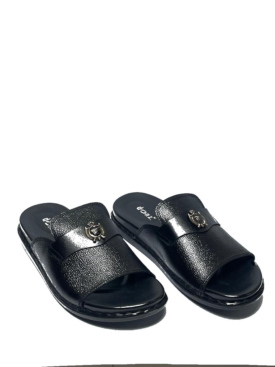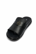 Step into unparalleled comfort and style with these Premium Black Leather Slide Sandals for Men. Crafted with high-quality, textured leather and a durable rubber sole, these sandals are perfect for both casual outings and relaxed indoor wear. Featuring an elegant antique gold crest on the strap, these sandals offer a touch of sophistication, making them ideal for the modern man looking for both comfort and fashion.